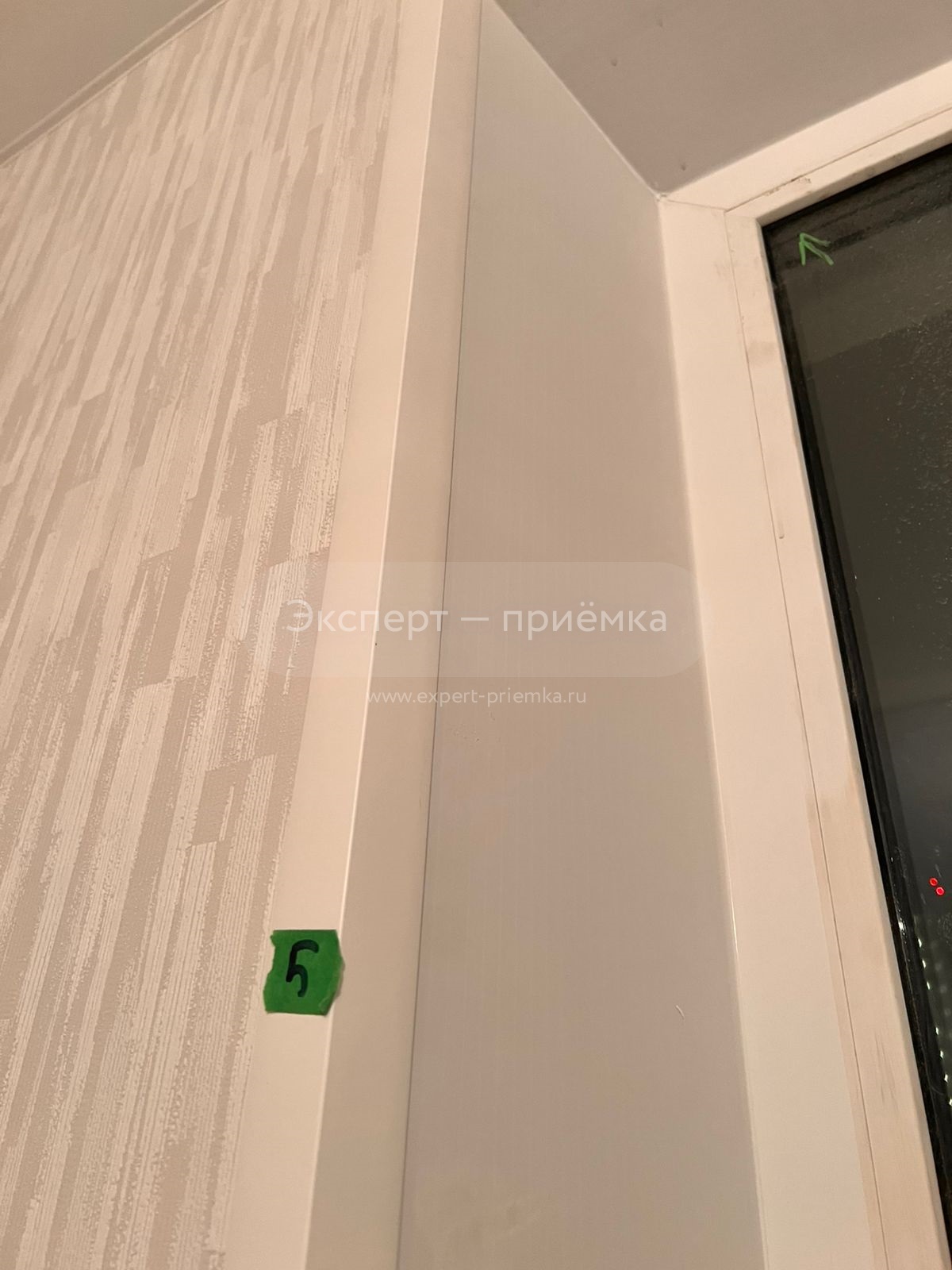 Левый откос имеет отклонение от вертикальной оси более 5 мм., правый откос 4 мм (кухня)